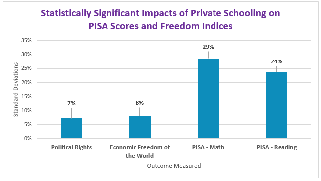 A companion report examined the effects on economic and political freedom of higher private school enrollments, finding positive outcomes there also.