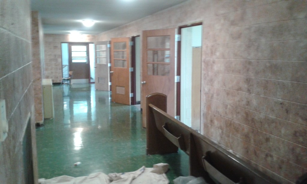I’m just going to say the truth: our school hallway was atrociously ugly. Take a look at it before our volunteers got their hands all over it.