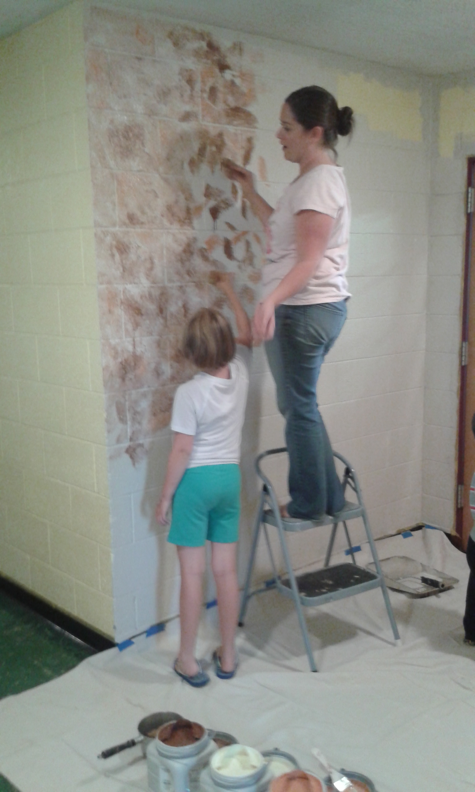 Then a legion of women and children showed up. Here’s mom Meghan and daughter Audrey tapping away with natural sponges. You go, girls!
