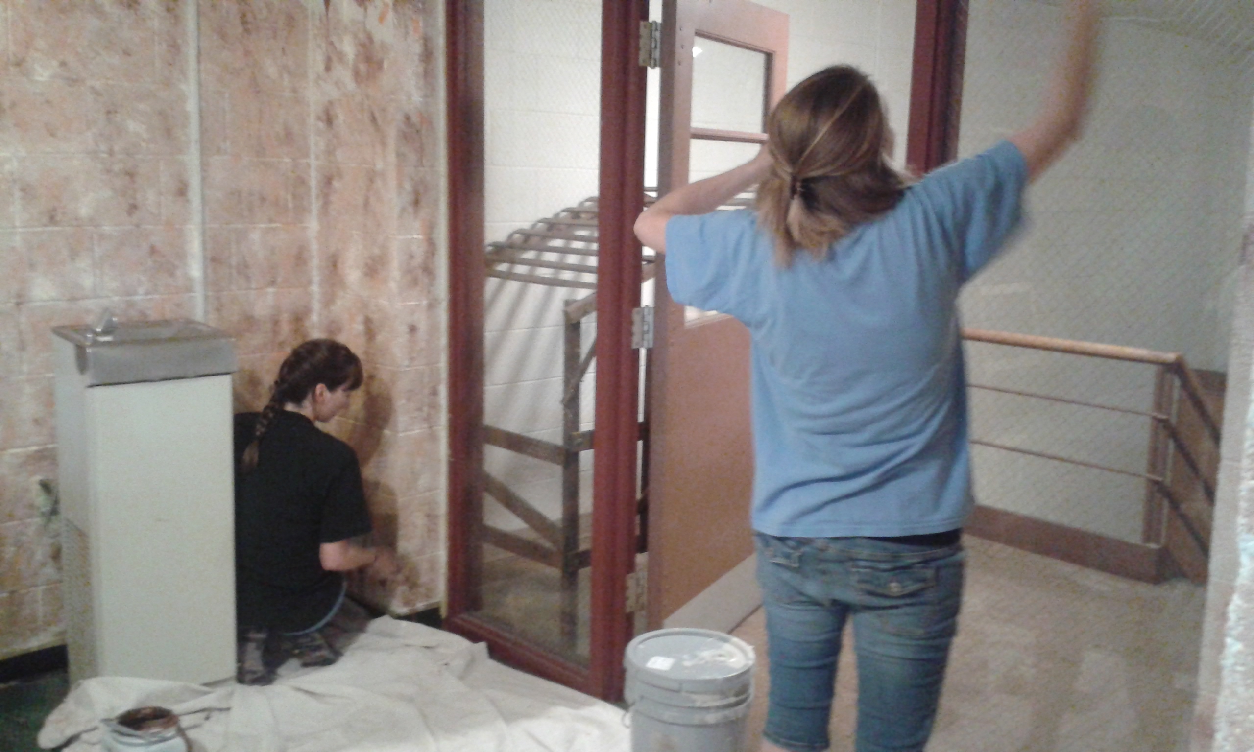 And volunteers Rosi and Amanda working away near the front entrance. Amanda is six months pregnant, and she showed up for our painting day anyway. What a woman.