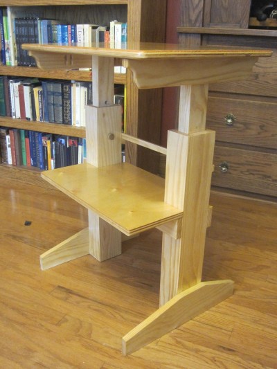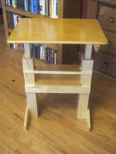 Last year, we used another desk as a template, because standing desks are a relatively new idea and fewer are available than conventional desks, especially in wood. A generous donor provided the first desk to model the rest for our first class, as they are very expensive to buy. We prefer wood because it’s more beautiful, classic, and long-lasting than metal and plastic. Putting students in a beautiful environment respects their personhood and develops their taste.