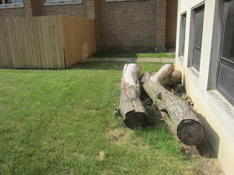 These logs have been destined for the natural playground since last year. Kind parishioners have put up with what looks like a pile of garbage in the yard. Of course the children love the logs and often find bugs and other interesting things in this corner.