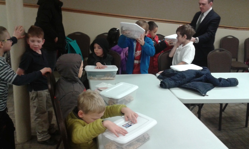 We bought two dozen crickets from a bait shop and handed them out, one per home. It wasn’t intended as a joke on mom and dad, but, well, some folks did feel that way! You can see how active the room is during cricket day!