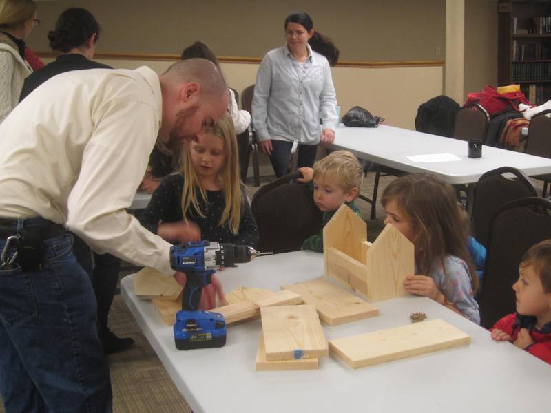 Due to Thanksgiving, today school is out and so is nature walk. Last Friday, however, and thanks to all those who brought their daddies and power drills, we completed a rather big project for young children: Building wood bird feeders. You can see some of the activity in the pictures below.